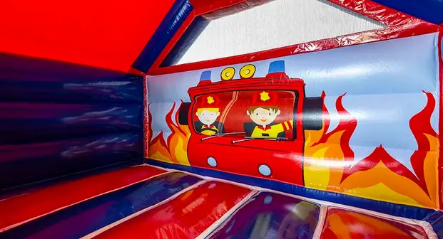 Unsere Slide Combo Hüpfburg im Feuerwehr-Design begeistert mit auffälligen 3D-Elementen, kinderfreundlichen Animationen und einer mitreißenden Optik, die alle kleinen Gäste magisch anzieht.